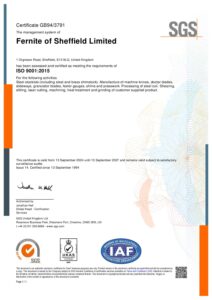 Fernite of Sheffield Ltd ISO9001:2015 certificate